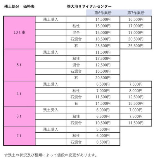 残土処分・販売 価格表